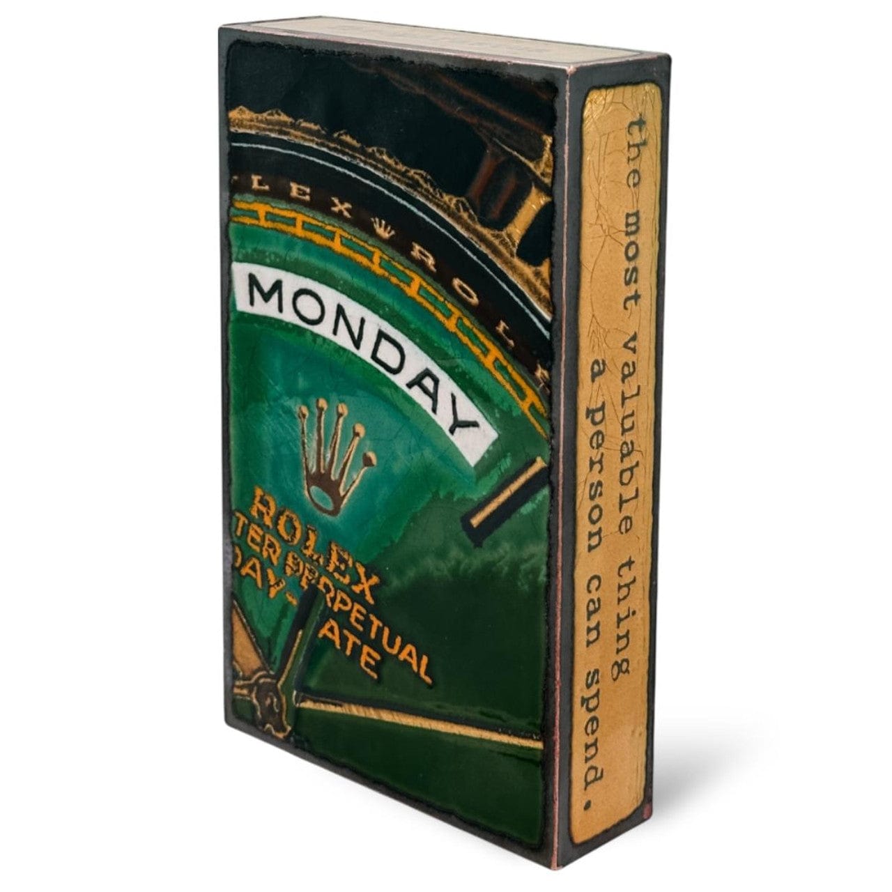 Introducing our #013V5 Tardis decor from Houston Llew's collection. This beautiful piece of artwork features sourced copper, glass enamel, and a custom wood box frame. This gorgeous piece measure 8.5" x 5.25" x 1.75" and weighs 2.5 lbs. Add a special touch to any room with this piece.