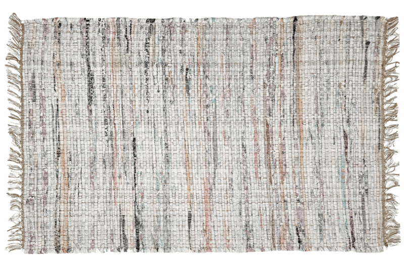 100% Hand-loomed cotton. Made from hand dyed cotton rags so slight variations in color may occur. Great quality at reasonable pricing. Suitable for all homes, all rooms.