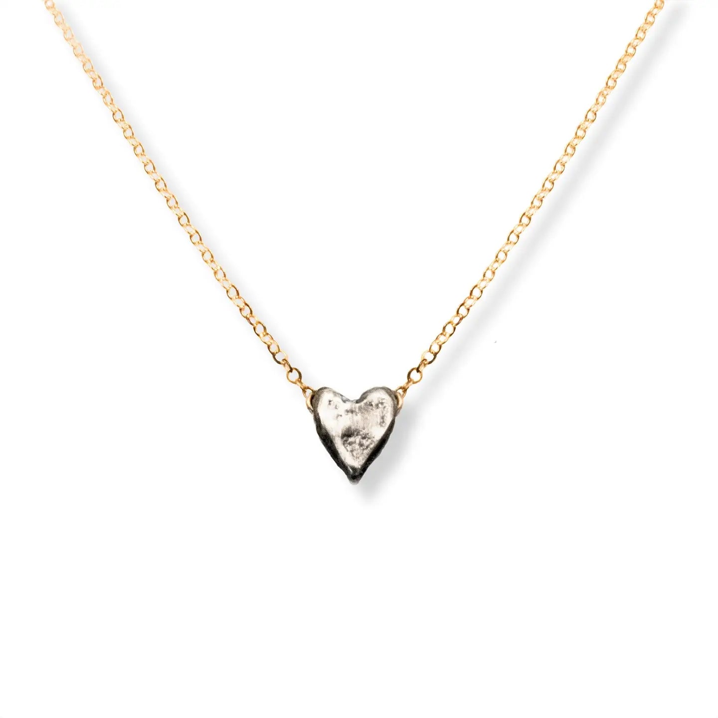 Dainty Silver + Gold Heart Necklace