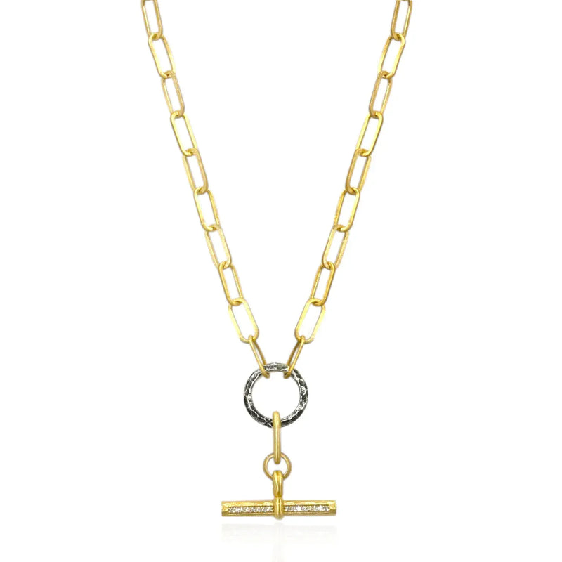 Mixed Metal Belle Pave Toggle Necklace