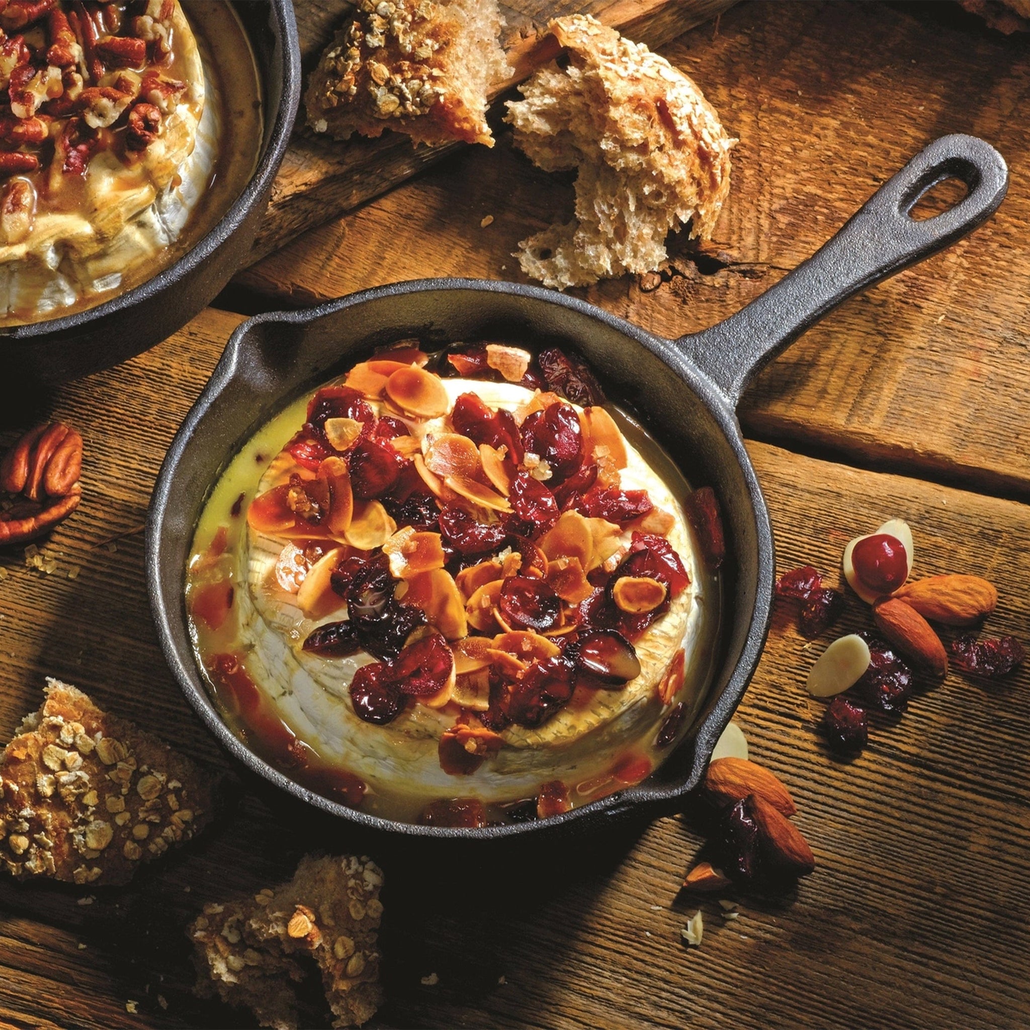 Pecan Brown Sugar Topping. Place prepared toppings on a round of Brie or Camembert in an oven-proof dish, bake in the oven (350F/180C) for 15 to 20 minutes, remove and serve with crusty artisan bread.