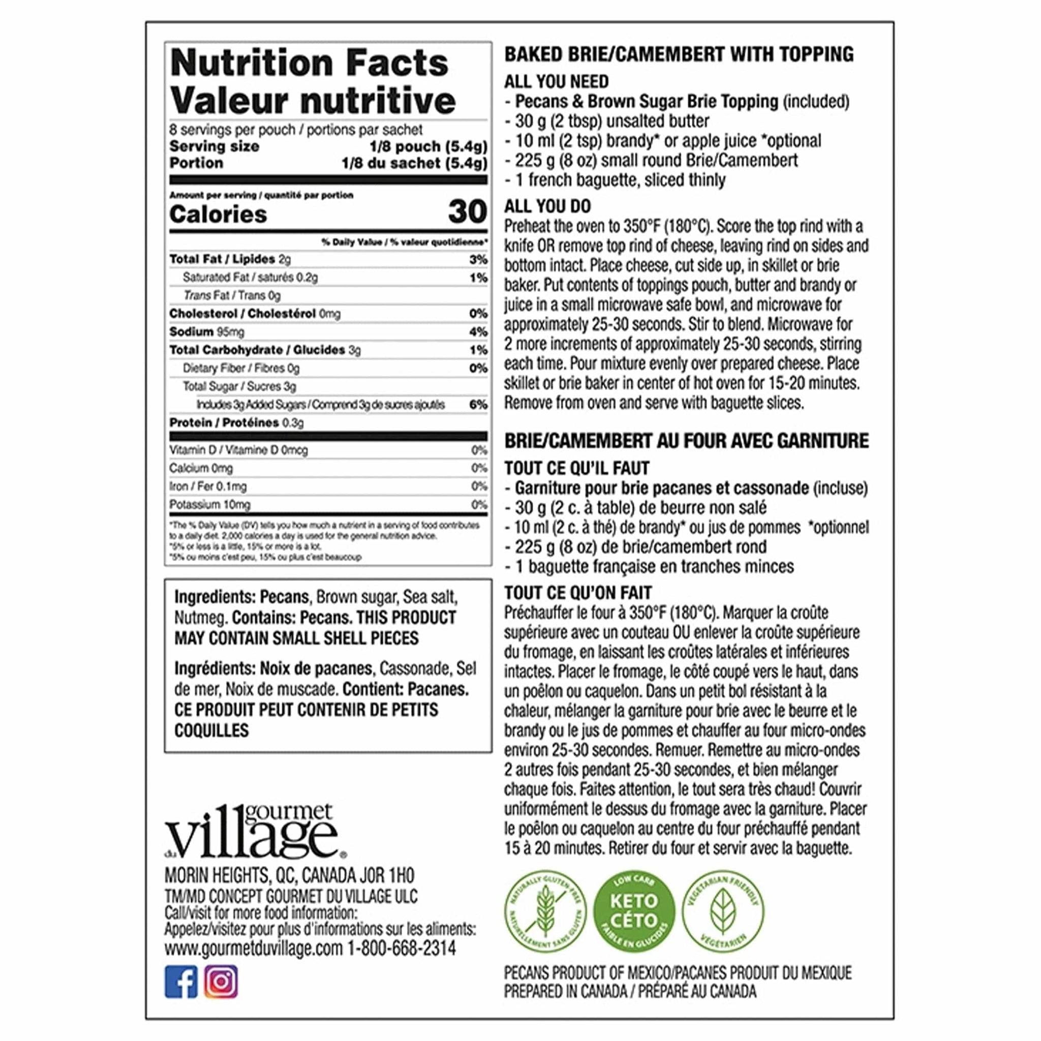 Gourmet Du Village Baking Mixes Brie Topping Mix Pecan Brown Sugar