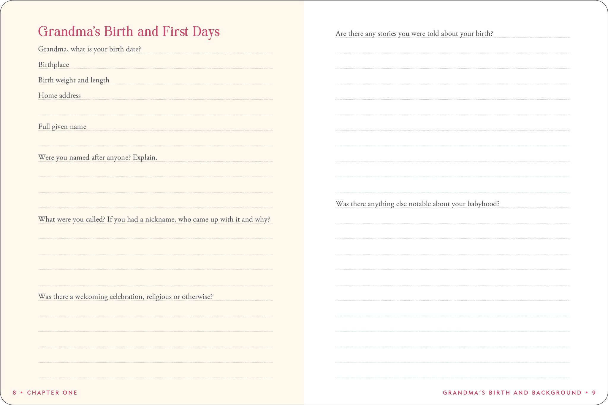 Tell your story and create a lasting keepsake with this elegant guided journal. Thoughtful prompts and lightly lined pages make reflection easy. Features include a durable hardcover that lies flat, an elastic closure, and an expandable pocket for notes or photos. Crafted with archival-quality 120 gsm paper and gold-gilded edges, this 6¼" x 8¼" journal is designed to preserve your memories for years to come.
