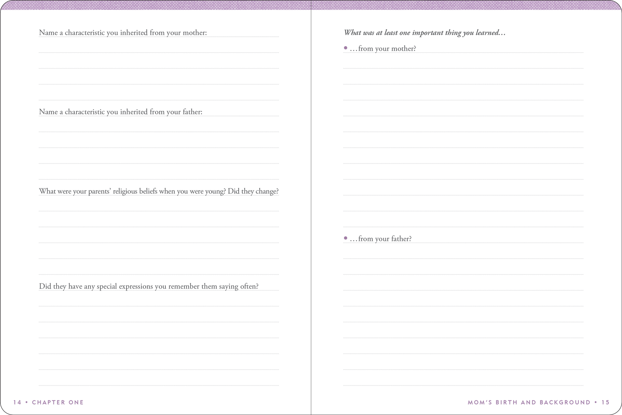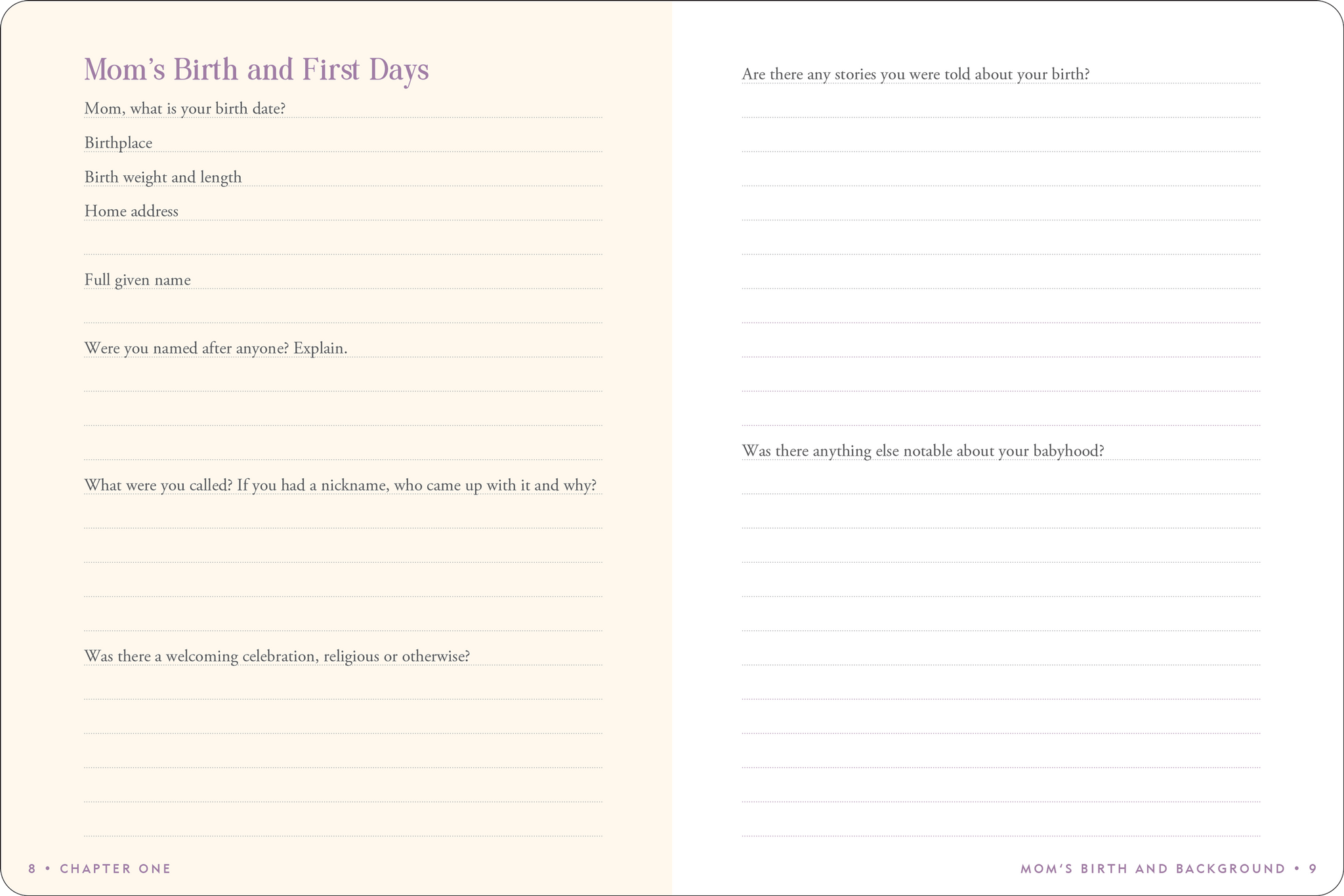 Preserve your memories and create a timeless keepsake with this elegant guided journal. Thoughtful prompts and lightly lined pages make it easy to reflect on your life and experiences. Designed for lasting use, it features a durable hardcover, lay-flat binding, elastic closure, and an expandable pocket for keepsakes. Archival-quality 120 gsm paper with gold-gilded edges adds a refined touch to this 6¼" x 8¼" journal—perfect for recording your legacy.