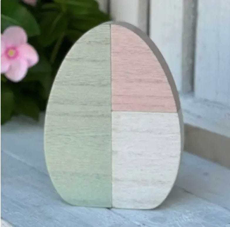 Measurements: 3" W x 4" T x 3/4" D Sage Washed Wood, Pink Washed Wood, and White Washed Wood Plank Egg Cutout